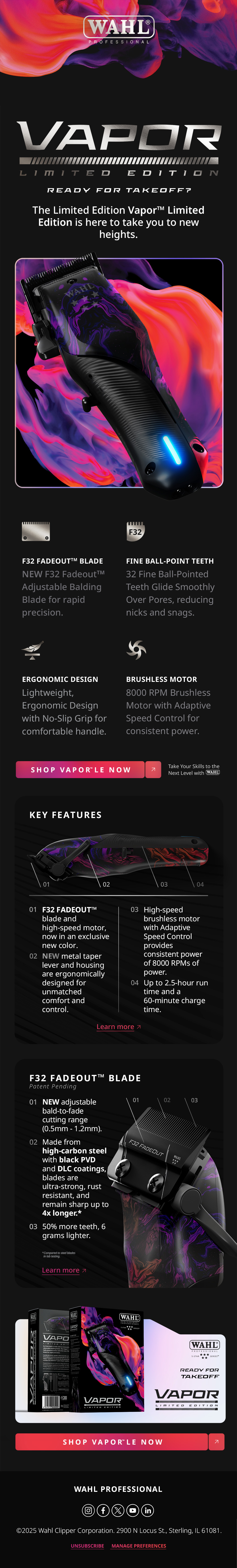 The ‘WAHL VAPOR F32 - Star Limited Edition’ is launched this time, using the most water technology to process the appearance of the body, and every part is an experimental color design.